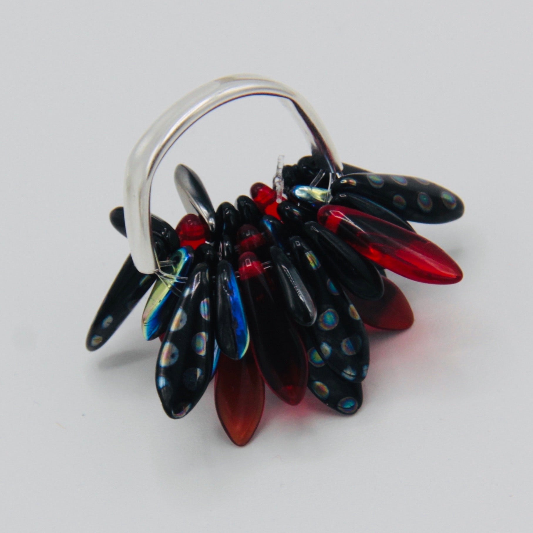 Wendy Ring in Black and Red with Blue Metallic Polka Dots
