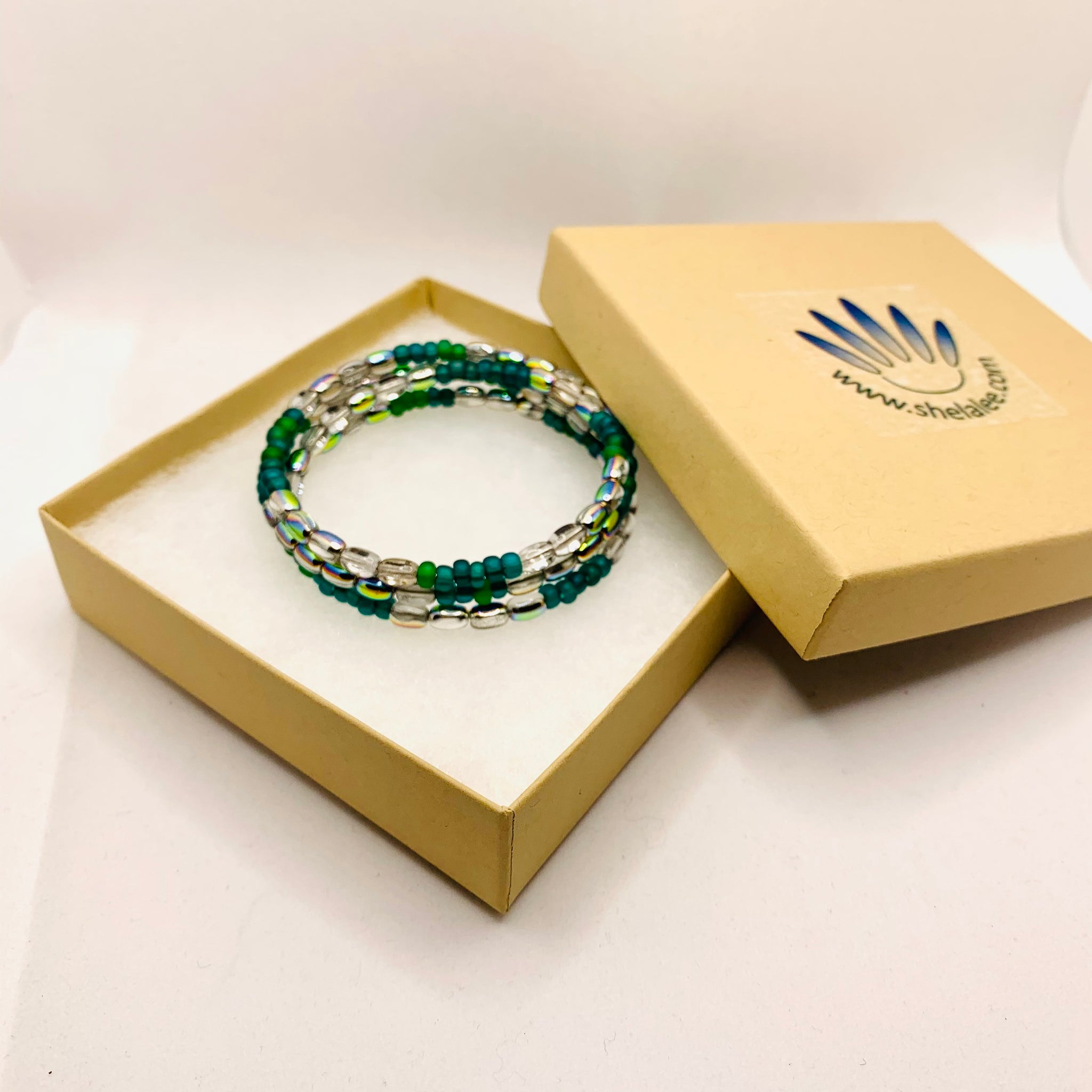 Dress up your arm with colors. The Whitney bracelet is a multi-color beaded bracelet that will add flare to any outfit. It is easy to wrap around your wrist, no closure needed. The Whitney bracelet is also popular gift item as one size fits most.