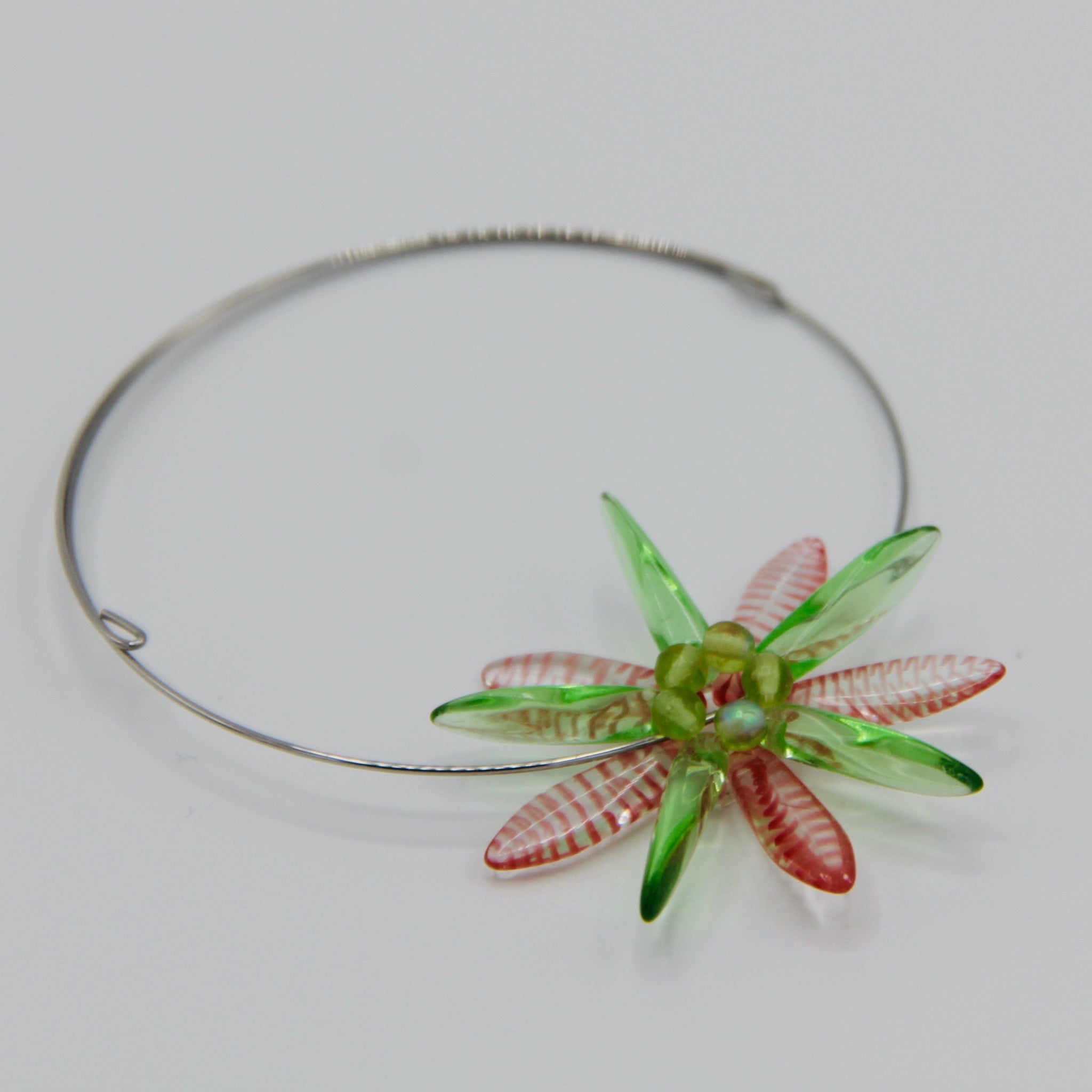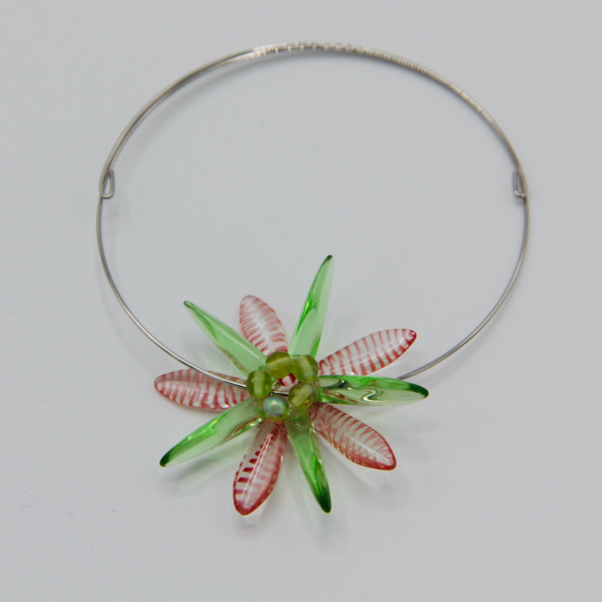 Wishing to have spring any month of the year? Simply slide on our Zoe flower bracelet. The Shelalee Signature flower sits neatly on a shiny silver memory wire. The bracelet is made to hug your wrist with a joyful twist. It can be paired with matching Anna or Elizabeth flower necklace and Eileen earrings.
